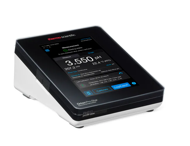 Designed to provide accurate and reliable pH, ORP and temperature analysis, the Orion Pro Star PH211 bench meter is well suited for laboratories that desire a modern meter with advance performance. Featuring a 7-inch, high-resolution color display with responsive capacitive touchscreen, the Orion Pro Star meter focuses on ensuring a streamlined, easy to use, innovative meter for your testing needs. The Orion Pro Star meter offers onscreen guidance with step-by-step instructions and supports GLP compliance with date and time stamped calibration logs and data logs.